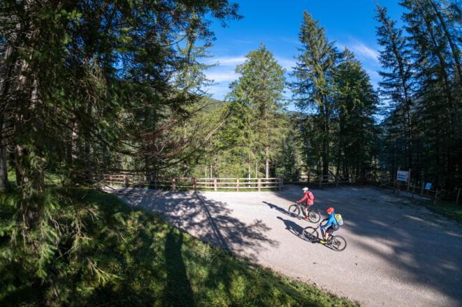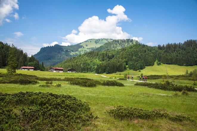 Auf der fahrtechnisch einfachen und familiengeeigneten Tour lernt man die Vielfalt der einzigartigen Naturschönheiten von Ruhpolding kennen. Vorbei am Freizeitpark kann man sich bis Urschlau gemütlich einradeln, bevor die Forststraße kurz vor Röthelmoos doch etwas steiler wird. Im Hochmoor der Röthelmoos Almen angekommen warten mit der Dandl- und Langerbauernalm zwei hervorragende Einkehrmöglichkeiten mit almtypischen Brotzeiten. Am idyllischen Wappbach entlang schlängelt sich der breite Weg hinab zum Weitsee. An den Seen - auch "Klein-Kanada" genannt, darf ein Badestopp nicht fehlen! Über Mitter- und Lödensee gehts zum glasklaren, von unteridischen Quellen gespeisten Förchensee. Über die Chiemgau Arena und die Laubau gehts an der Traun entlang zurück zum Ausgangspunkt.