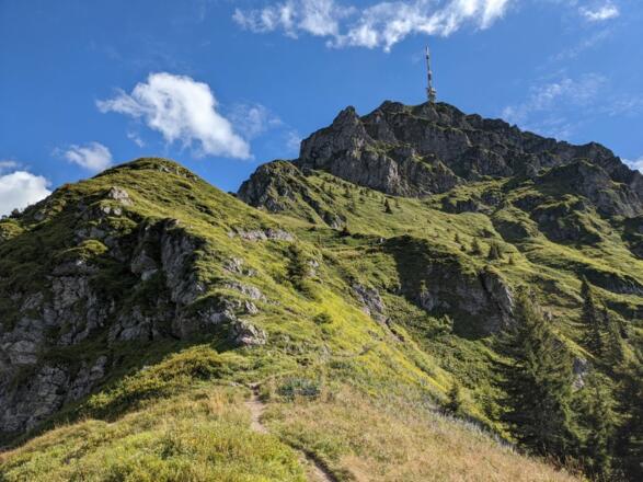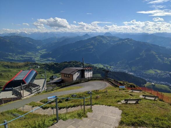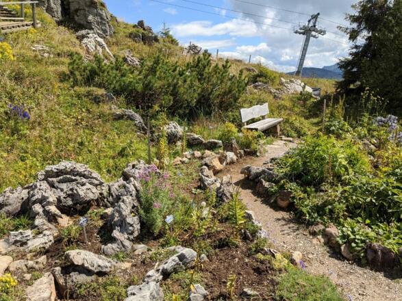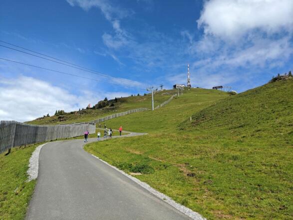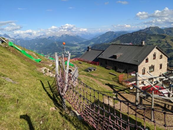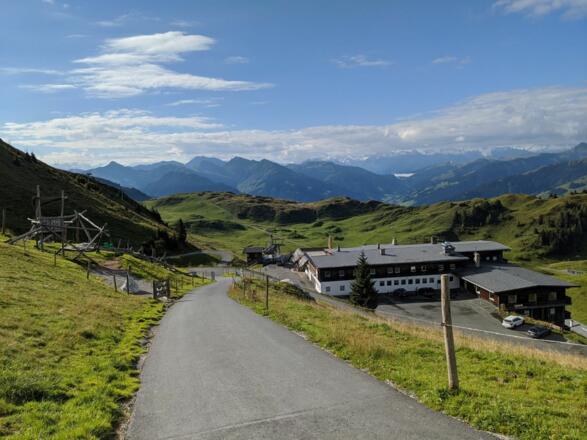Dann auf dem Zufahrtsweg zum Kitzbüheler Horn weiter, bis Sie den Eingang zum Alpenblumengarten erreichen. Durch diesen hindurch und oben am Weg weiter zum Horngipfelhaus (50 min ab dem Alpenhaus) und dem Sender an der Spitze des Horns.