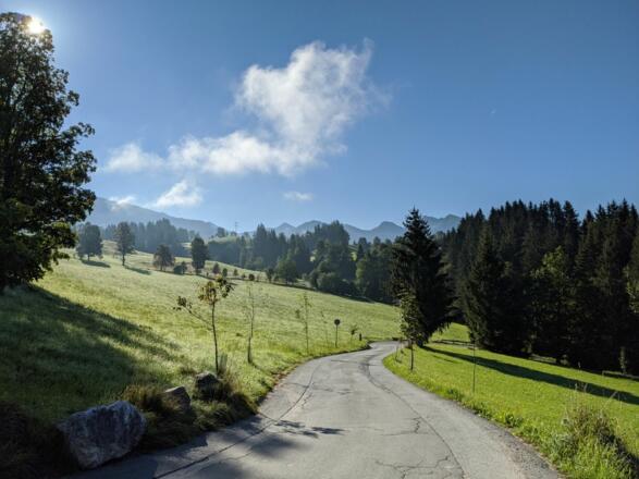 Vom Ausgangspunkt Talstation Hornbahn gehen Sie auf der Zufahrtsstraße Richtung Hagstein. Beim Bauernhof Grünberg zweigen Sie auf einen steilen Forstweg RichtungGasthof Hagstein, Adlerhütte, Alpengasthaus ab.