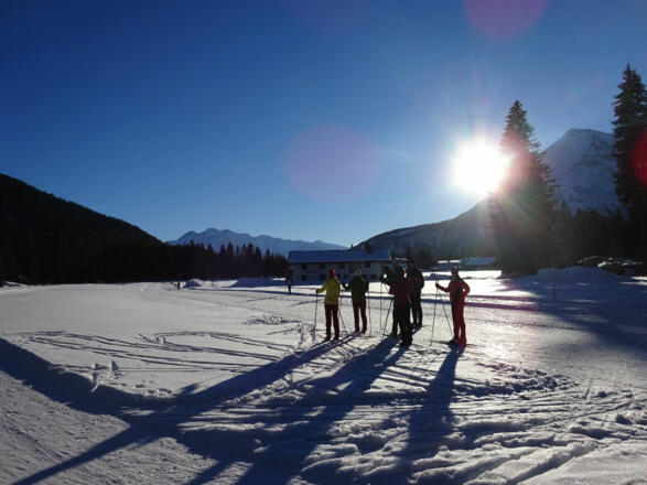 Loipeneinstieg: Langlaufzentrum Leutasch – Alpenbad, Bogen, Parkplatz Leutasch Fußballplatz