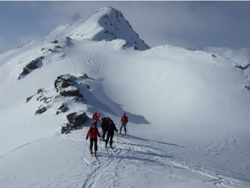 Die Spannung im überwiegend einfachen Gelände spitzt sich bis zum Schluss zu, heißt es beim sehr steilen Gipfelgrat Augen zu und durch. Zwar kurz, aber zum Teil ausgesetzt und mit einwandfreier Spitzkehrentechnik gelangt man auf die panoramareiche Aleitenspitze.