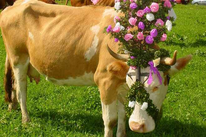 In der Herbstzeit werden die Kühe von den Almen der Prientaler Berge geführt.