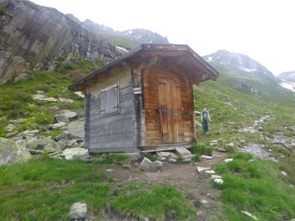 Die kleine, verschlossene Sennerhütte am Bruckmann Weg im Ochsental kann als Unterstand genutzt werden.