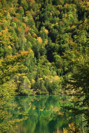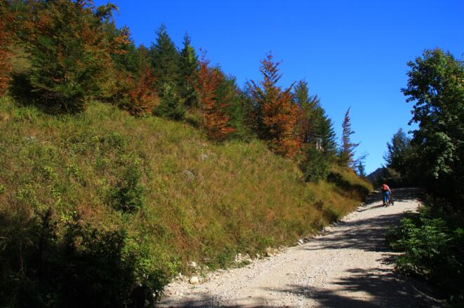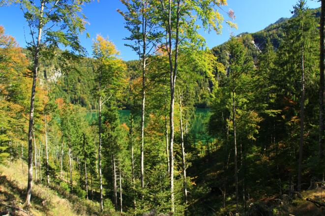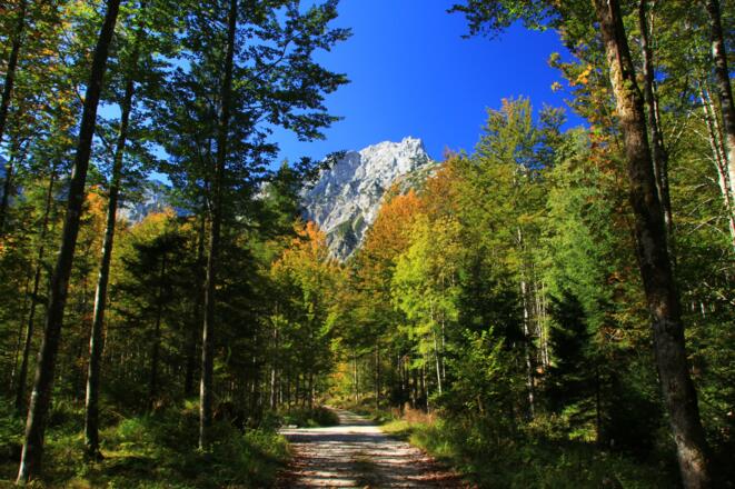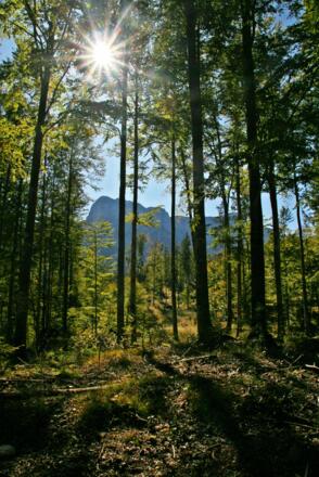 Am Ende des Parkplatzes nehmen wir die rechte Forsstraße und gehen auf dieser vorbei an einer Wildfütterung bis zur zweiten Abzweigung rechts, die in einem spitzen Winkel einmündet. Dieser folgen wir bis zur nächsten Weggabelung und gehen ebenfalls rechts weiter. Bei den nächsten 2 Abzweigungen halten wir uns rechts, wo wir auf den markierten Wanderweg 04+404+420 treffen. Wir gehen weiter, bis der markierte Weg zum Deutschen Haus nach rechts abzweigt und bleiben auf der Forststraße. Bei der nächsten Abzweigung halten wir uns links und gehen auf dieser weiter Richtung Tal bis wir auf die Hauptstraße treffen und überqueren diese. Nun links weiter auf dem Wanderweg entlang der Straße und biegen nach kurzerm nach rechts ab und folgen nun den markierten Ostuferweg bis zu unserem Ausgangspunkt. Kurze Steigungen ca. 10%.