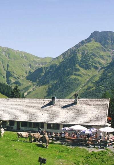 Die mit Milchkühen bewirtschaftete Alm ist "der Balkon des Lechtals" und bietet Tiroler Hausmannskost, Rippelen und Haxn, Brotzeiten, Kässpatzen, Kaiserschmarren, selbstgemachte Strudel und Kuchen, täglich frische Michl- und Buttermilch.