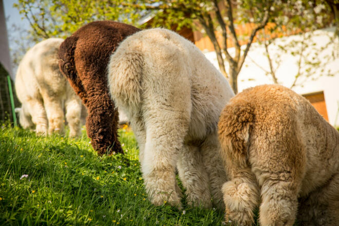 Im Frühjahr 2017 zogen sechs wuschelige, kuschelige und vor allem supersüße Alpakas bei den Loys ein. Bis heute hat sich die Herde auf bereits 16 Tiere erweitert.