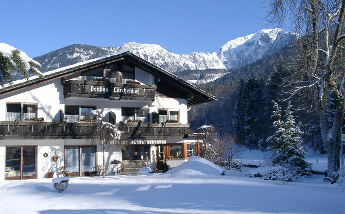Der Lärchenhof - Ihr Alpenhotel zum Wohlfühlen! Ruhige, sonnige Lage am Nationalpark. Umgeben von grandiosem Gebirgspanorama idealer Ausgangspunkt für Wanderungen. Königssee, Jennerbahn, Gaststätten erreichen Sie zu Fuß, Bushaltestelle am Haus. Zimmer mit DU/WC, Balkon, Tel., Kühlschrank, Haarföhn, Radio und Kabel-TV. Vitalfrühstücksbuffet. Wellness mit Sauna, Solarium, Aromadampfbad, Infrarotkabine. Gratis Bike-Verleih, Schneeschuhwandern im Hotel. Pauschalen ab 239.-/7ÜN