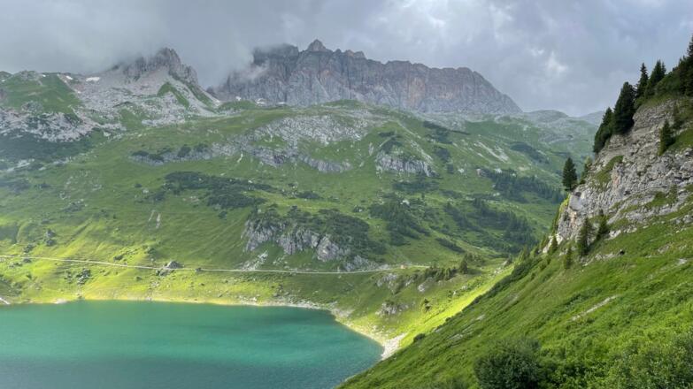 Wir haben diese Etappe mit dem Bus zurückgelegt, was euch einen elendslangen Hatscher erspart. Der Bus zum Formarinsee ist ein Doppeldecker mit offenem Dach. Super Aussicht, wenn auch nicht ganz billig. Von der Endhaltestelle am Formarinsee muss man über einen Steig um den See herumgehen und zur Freiburger Hütte ansteigen (1/2 Std.)