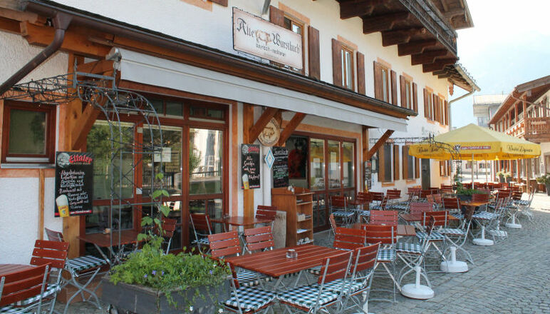 Unsere leckeren Gerichte können Sie auch mit nach Hause nehmen. Vorbestellungen nehmen wir gerne entgegen! Unser Restaurant ist mit 30 gemütlichen Sitzplätzen im Innenbereich ausgestattet. Unsere ruhige Sonnenterrasse ist noch mit weiteren 50 Sitzplätzen bestuhlt. Die "Alte Wurstkuch" befindet sich am wunderschön bemalten Pilatushaus mit Aussicht auf den Oberammergauer Hausberg, den "Kofel". Das heißt für Sie Entspannung und Ruhe pur. Sie finden uns im Ortszentrum am Sternplatz.