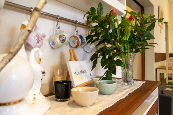 Wir begrüßen Sie gerne... ...in unserem liebevoll dekorierten Café, mit barrierefreiem Zugang mitten in Münnerstadt. Beginnen Sie bei uns den Tag mit einem kleinen oder großen Frühstück, lesen Sie gemütlich Zeitung bei einem Cappuccino, treffen Sie sich zum Kaffeeklatsch mit Freundinnen, machen Sie eine Pause und tanken Sie Energie mit unseren hausgemachten Suppen oder kleinen Gerichten, feiern Sie Familienfeste und Geburtstage, freuen Sie sich auf unsere Kulinarischen Donnerstage mit Gerichten und Buffets aus aller Herren Länder, bestellen Sie sich ganze Kuchen und Torten für zu Hause, lassen Sie sich leckere Buffets liefern und haben Sie vor allem eines bei uns: EINE SCHÖNE ZEIT Essen wechselnde Wochengerichte Sonntag von 11 bis 14 Uhr: Futtern wie bei Muttern (klassisches Sonntagsessen) Donnerstag ab 17 Uhr: Kulinarischer Donnerstag (Wöchentlich wechselnde Gerichte aus aller Welt) Kuchen und Torten Wir stellen alle unsere Kuchen und Torten selbst her. Nach ganz normalen Rezepten, wie wir sie von Mama oder Oma kennen. Mit besten Zutaten und ohne Schnickschnack. Und so schmecken sie dann auch: hausgemacht! Unsere leckeren Kuchen und Torten gibt es auch auf Bestellung zum Mitnehmen oder Liefern lassen. Partyservice In unseren gemütlichen Räumlichkeiten können Sie Familienfeste und Geburtstage feiern. Auch außerhalb unserer Räumlichkeiten versorgen wir Sie auf Wunsch mit leckeren Gerichten. Kunst und Kultur Ein wichtiger Bestandteil unseres Cafés sind Kunst und Kultur. Regelmäßig stellen wir die Werke verschiedenster Künstler aus.