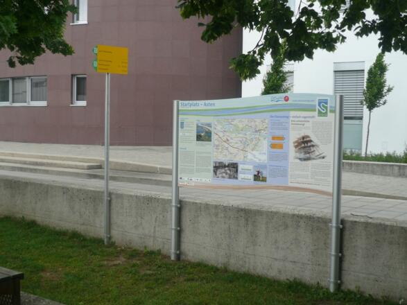 Der Rundweg beginnt in Asten vor dem Gemeindeamt. Von dort aus gehen wir nach Süden und überqueren bei einer Spar-Filiale die Bundesstraße. Auf der anderen Seite behalten wir die Richtung bei, überqueren über eine Brücke die Autobahn und erreichen Samesleiten. Wir halten uns rechts und wandern an einigen Bauernhöfen vorbei, hinunter nach Weiling. Dort gehen wir rechts zum Freilichtmuseum Sumerauerhof ( www.sumerauerhof.at ). Dort gehen wir geradeaus über einen Feldweg, vorbei an der Firma Backaldrin und unter der Autobahn hindurch. Auf der anderen Seite erreichen wir wieder Asten. Beim Gasthof Goldenes Schiff überqueren wir wieder die Bundesstr. und gehen geradeaus weiter. Über die Breitwieserstr. verlassen wir Asten und wandern durch die Kulturlandschaft. Wir überqueren den Ipfbach, halten uns links und überqueren die Wiener Bundesstraße. Rechts von einem Bachlauf folgen wir der Straße, biegen rechts in die Bahnhofstraße ein und gehen durch die Unterführung. Auf der anderen Seite beigen wir links ab und ziehen eine Schleife rund um Raffelstetten. Bei der Bahnunterführung treffen wir wieder auf den bereits bekannten Weg, biegen aber gleich links ab und gehen der Bahn entlang zurück. Nachdem wir den Ipfbach überquert haben, biegen wir rechts ab und folgen seinem Verlauf Richtung Süden. Wenn wir die ersten Häuser erreichen, biegen wir links ab und erreichen durch die Siedlung wieder den Ausgangspunkt.