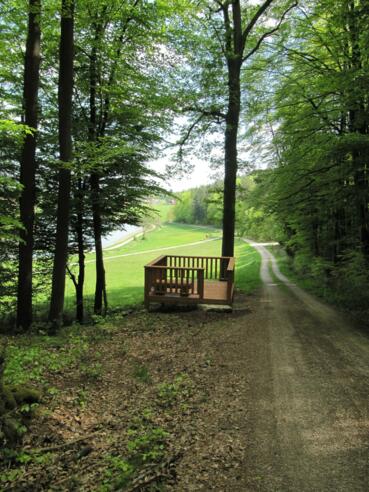 Nach einer aufregenden ersten Hälfe auf dem Erlebnispfad lädt diese Aussichtsplattform zu einer gemütlichen Rast mit Blick auf die Tretzendorfer Weiher und das Aurachtal ein.