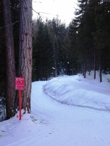 Charakteristik: Die Loipe B6 führt unterhalb vom Hotel Interalpen vorbei und geht fast ausschließlich durch den Wald. Sie dient als Zubringerloipe der Hotelgäste.