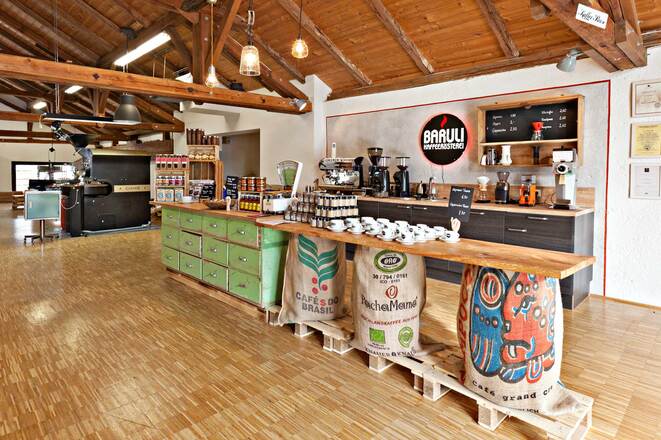 Kaffeerösterei Baruli mit Bohnenverkauf und Kaffeeausschank
