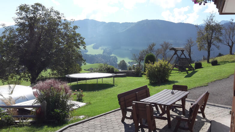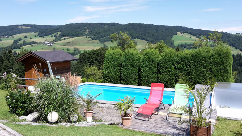 Vor dem Haus befindet sich ein Schwimmbad in dem Sie sich an heißen Tagen gut abkühlen können oder aber Sie besuchen unseren privaten Badeplatz am Mondsee (ca. 3 km)