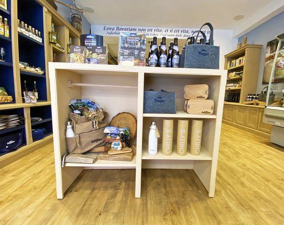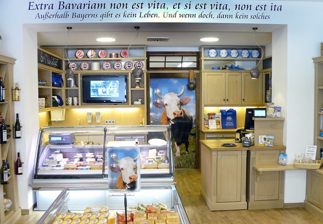 Es ist eine Freude, das Geschäft Käsetheke & Kulinarium der Bergader Privatkäserei zu besuchen. Direkt am Maxplatz ist es leicht zu finden. Hier bekommt man ein vielfältiges Angebot von Käse aus eigener Herstellung aus Waging am See. Der Käse wird im SB-Regal in der attraktiven Verpackung und in der Käsetheke im Anschnitt präsentiert. Darüber hinaus findet der Besucher hier erlesene Weine, Obstbrände aus der Region und Chutneys, die gut zum Käse passen. Der große Renner ist der mild – nussige Bergbauernkäse. Die Sortenvielfalt geht vom Bergader Edelpilz, dem Bavaria blu über den Bonifaz und den Bergader Almkäse bis zum Kashkaval, einer Spezialität, die ursprünglich aus der Türkei kommt. Immer wieder gibt es neue Sorten und Geschmacksrichtungen, wie z.B. den Bavaria blue dolce, die cremige Ergänzung unseres Bavaria blu Sortiments, hergestellt wie auch die anderen Bergader Käsespezialitäten mit natürlichen Zutaten und ohne jegliche Konservierungsstoffe. (von Jürgen Pieperhoff)