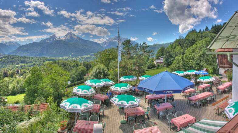 Unser Gasthof liegt in ruhiger, sonniger Südhanglage, mit unverbautem, traumhaftem Blick auf die Berchtesgadener Bergwelt. Eigenes Wildgehege, Tiere zum Anfassen!