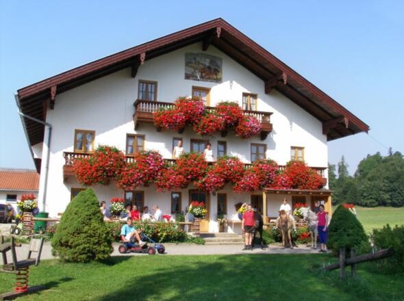 Tiererlebnishof in ruhiger Einzellage mit herrlichem Bergblick. Zu unserem familien- und kinderfreundlichen Bauernhof gehört ein Spielplatz mit Pferdewippe, Trampolin, Sandkasten, Babyschaukel, Kletterseil und einer Wippe. Milchvieh Stalldiplom oder -urkunde, Pferde, Ponys zum Reiten für große und kleine Kinder nach Teilnahme gibt es noch unser "Bertlhof-Reitabzeichen". Wir haben ein Hängebauchschwein, Ziegen, Meerschweinchen, Hasen und eine Naturzucht von verschiedenen Arten von Geflügel. Für unsere großen und kleinen Gäste stehen, ein Kinderfuhrpark wie Trettraktor, Kettcar, kleine Kinderräder, Roller, Dreiradl und Bobbycar zum Austoben zur Verfügung. Für abends und an Regentagen halten sich unsere Gäste gerne im Spiel-und Aufenthaltsraum auf. Eine große, zum Teil überdachte Terrasse mit Tischen und Stühlen, sowie Liegewiese mit Liegen laden zum Erholen ein. Frühstück auf Wunsch mit unseren hofeigenen Produkten in der Ferienwohnung.Im Winter halten wir Schlitten und Bobs kostenlos für Sie bereit. Die Skigebiete sind nur 30 Minuten Autofahrt enfernt.