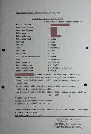 Die Bezirkshauptmannschaft in Dornbirn war und ist bis heute noch ein Ort, der für viele der damaligen Gastarbeiterinnen und Gastarbeiter mit Angst verbunden ist. Insbesondere hatten wir Angst davor, kein Visum zu erhalten und dann abgeschoben zu werden. Diese Behörde war der Schlüssel für das Leben in Dornbirn. Hier entschied es sich, ob Hoffnungen und Träume zerstört oder Existenzen aufgebaut und weitergeführt werden konnten. Viele, die damals das Visum nicht erhalten hatten, weil sie zur Antragstellung keine Arbeit vorweisen konnten, wurden dadurch in die Illegalität gezwungen. Ich konnte damals nicht ausreichend gut Deutsch, um mich auf der Bezirkshauptmannschaft verständlich machen zu können. Nachdem damals viele Gastarbeiterinnen und Gastarbeiter das gleiche Problem hatten, zogen wir Übersetzer bei. Diese hatten dafür keine eigene Ausbildung absolviert. Vielmehr handelte es sich um Landsleute, die schon länger in Österreich waren und deshalb die Sprache besser beherrschten als wir, die wir neu eingewandert waren. Dennoch mussten auch sie oftmals „mit Händen und Füßen“ übersetzen. Das Übersetzen war ein lukratives Geschäft, mit dem sich viel Geld verdienen ließ.
