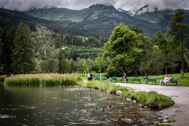 - Kuier naar believen in het park en stap via de Alpen Arena en de dorpsstraten naar de Kaiser-Franz-Platz. Volg van daaruit de Salzburgerstraße terug naar het hotel.