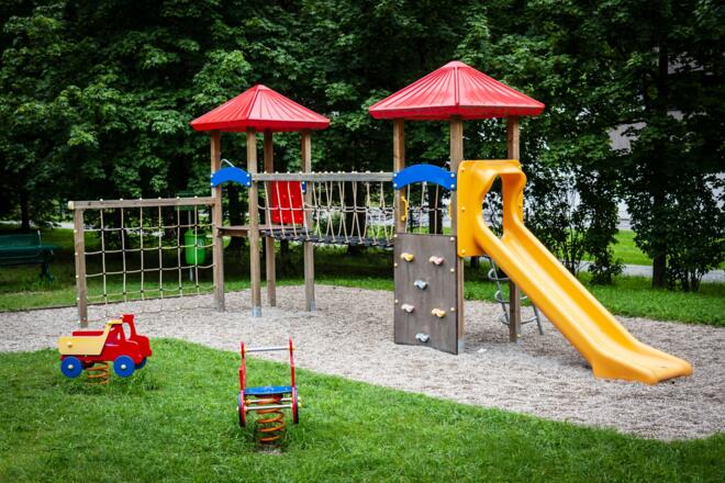 - Volg de eerste straat rechts 'Roseggerweg' tot beneden in het Griespark. Je kan er halt houden bij de speeltuin.