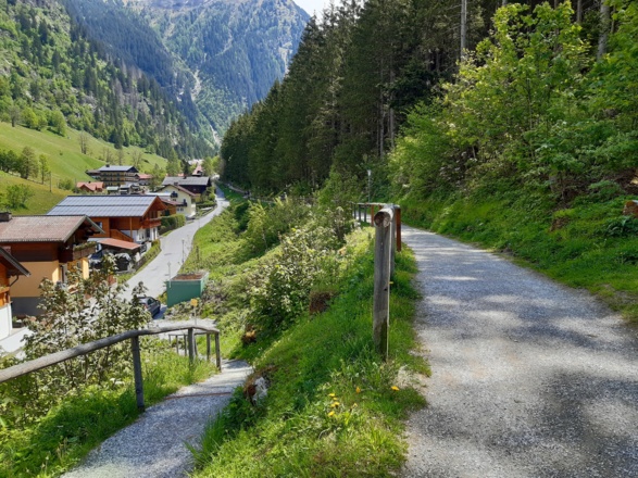 - Achter de brug neem je de gewone baan terug richting het hoteldorp Grüner Baum, je volgt terug de weg waarlangs je gekomen bent om vervolgens aan de Gamskarstrasse de Kötschachbach over te steken om richting Badbruck te wandelen.