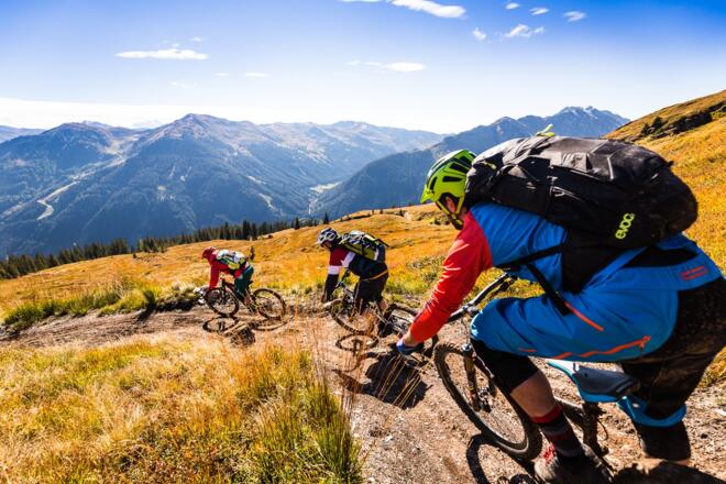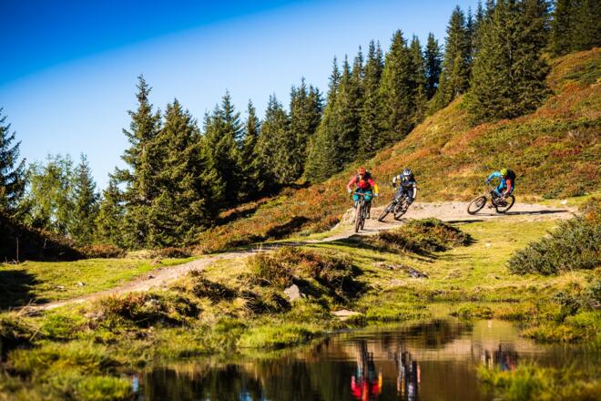 MTB-Strecke bergauf bis Reiterkogel, MTB-Strecke bergab bis Wetterkreuz Speicherteich, Wetterkreuz Trail, MTB-Strecke zur Sportalm, Blue Line bis Hinterglemm