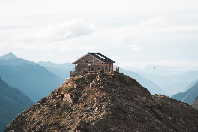 Die letzten Höhenmeter absolviert man in kurzen Serpentinen hinauf zum Brunnenkogelhaus auf 2.738 m.