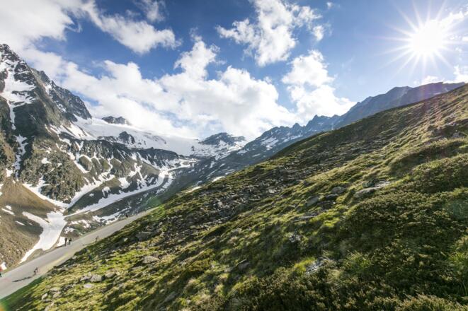 Schon die Eckdaten der Mountainbiketour – 32 Kilometer (davon ca. 6,5 km oberhalb von 2500m) und 1600 Höhenmeter – machen klar, dass es sich hier um eine der anspruchsvollsten Herausforderungen in der Region handelt. Die Route startet bei der Freizeit Arena und führt dann über die Ötztaler Bundesstraße zur BP Tankstelle, wo kurz davor die Straße rechts abbiegt. Über die Weiler Außerwald und Innerwald gelangt man zur Gletscherstraße. Die endlos lange Kletterpartie auf der Ötztaler Gletscherstraße folgt den Spuren der Königsetappe bei der Tour de Suisse und Deutschlandtour. Angesichts der rund 1500 Höhenmeter am Stück befiel schon die Profis das große Zittern. Höchster Punkt ist der Parkplatz am Rettenbachgletscher auf 2.800 Hm, zugleich der höchste Straßenpunkt Europas! Die Abfahrt führt über dieselbe Straße wieder zurück zur Freizeit Arena.