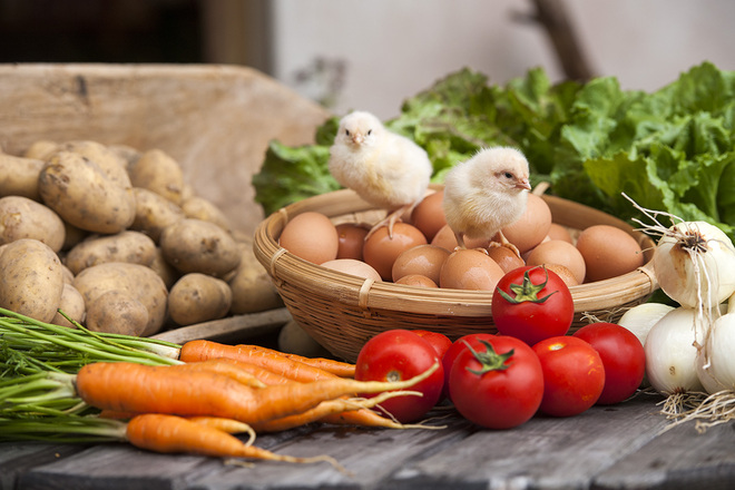 Die Tiere erhalten ausschließlich Futter, das auf den eigenen Wiesen und Feldern wächst und sie haben ganzjährig Zugang ins Freie. Auf den Feldern wächst Dinkel, Weizen, Roggen und ein Gemenge aus Hafer, Gerste und Erbsen. Der Gemüsebau mit saisonalen Produkten wie Salate, Broccoli, Mangold etc. sowie Lagergermüse wie Gelbe Rüben, Zwiebel, Kraut, Lauch, Schwarzer Radi usw. rundet die Vielfalt ab.