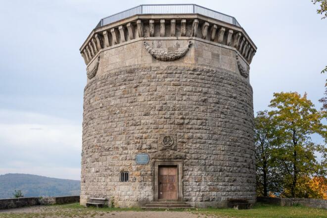 Im Nordosten Bad Kissingens steht der mächtige Bismarckturm auf dem 370 m hohen Sinnberg. Von hier haben Sie einen fantastischen Ausblick auf die Stadt und ihre umliegenden, bewaldeten Hügel. Der Turm wurde Anfang des 20. Jahrhunderts zu Ehren des ehemaligen Reichskanzler Otto Fürst von Bismarck errichtet – ein regelmäßiger Kurgast Bad Kissingens. Im zweiten Weltkrieg diente der unfertige Bismarckturm vorübergehend der Luftraumbeobachtung, bevor er in den 1980er-Jahren fertiggestellt wurde. In den Sommermonaten ist die Aussichtsplattform auf dem Turm täglich für Sie geöffnet. Ein Besuch lohnt sich und lässt sich wunderbar mit einer Wanderung durch die östlichen Wälder Bad Kissingens verbinden, z. B. auf dem „Rundweg Bismarckturm“.