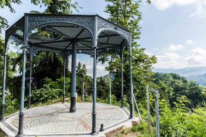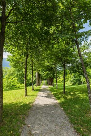 Es bedurfte aber eines leibhaftigen Ritters, um dem Erholungsgebiet zu seinem Glanz zu verhelfen. Josef Andreas Ritter zu Tschavoll, zweimaliger Bürgermeister von Feldkirch, kaufte das Gelände 1868 und legte im Stil englischer Landschaftsgärten ein Kunstwerk mit Aussichtspunkten, Palmenhaus, Kleintierställen, Springbrunnen und seltenen Baumgruppen an. Dann lag das Anwesen lang in einem Dornröschenschlaf, bevor die Stadt es erwarb und 2006 mit der Reaktivierung begann. Die Seele bekommt Flügel, wenn man die neu bepflanzte Lindenallee entlangschreitet und zum baumumwipfelten Pavillon "Rädle" aufsteigt.