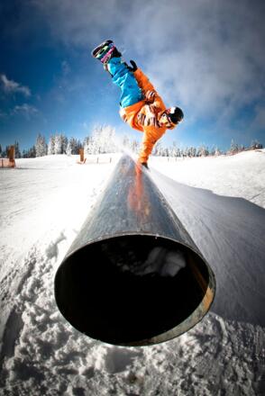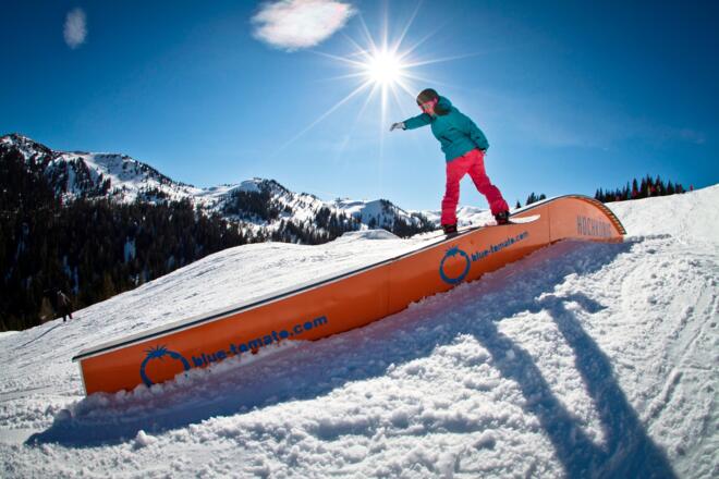 Der Blue Tomato Kings Park erstreckt sich beinahe über die gesamte Länge der 8er Kabinenbahn Kings Cab und füllt damit eine unglaubliche Länge von 1,8 km mit feinsten Freestyle-Elementen aus.