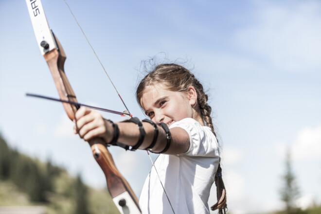 Es warten verschiedene Staionen, wo man seine Geschicklichkeit mit Pfeil und Bogen zeigen kann. Der Weg führt von der Bergstation Karbachalmbahn durch Wald und über Wiesen.