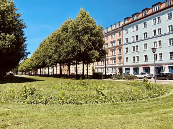 Der Bordeauxplatz ist ein Ort mit französischer Atmosphäre und umgeben von Linden im Franzosenviertel Haidhausens.