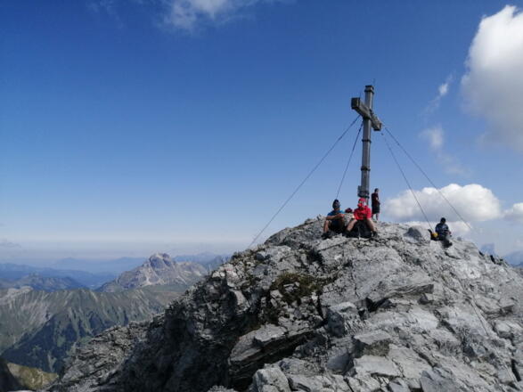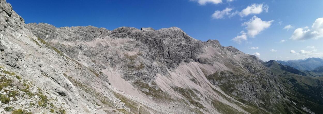 Ab der Hütte wird der nun nach Nordosten führende Weg deutlich anspruchsvoller. Wir folgen dem Theodor-Praßler-Weg. Ca. 1 h vor dem Gipfel zweigen wir auf den Weimarer Steig ab. Hier führt ein schmaler, sehr steiler Serpentinenweg weiter. Auf der Gipfeletappe sind einzelne ausgesetzte und ungesicherte Stellen zu meistern (einzelne Stellen im I. Grad). Die Hände werden öfters zum Einsatz kommen. Dafür belohnt uns die grandiose Aussicht. Wer es geschafft hat, darf zurecht stolz auf sich sein.