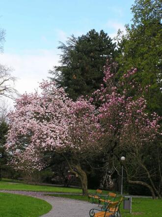 Der Thurn & Taxispark, zwischen Wolfeggstraße und Gallusstraße, war 1924 der erste Park Österreichs, der unter Denkmalschutz gestellt und als „Kulturgut“ behandelt wurde. Seitdem ist der an exotischen Bäumen reiche Park vor Veränderungen jeglicher Art geschützt und damit weitgehend originalgetreu erhalten. Vom Gingkobaum über Tulpen-, Geweih- und Götterbaum bis zu Mammutbäumen, Himalayazedern und Hemmlockstannen finden sich die verschiedensten Baumarten in diesem Park. Bekannt ist er auch für seine Sternmagnolien, Taschentuchbäume und die eindrucksvolle Silhouette mächtiger Buchen. Gegründet 1848 durch Goldwarenfabrikant Karl Güllich aus Pforzheim, erworben 1884 als Teil der Villa Güllich durch Prinz Gustav von Thurn & Taxis, ist der Park ein typischer Landschaftsgarten des 19. Jahrhunderts. Der neue Eigentümer und Namensgeber ergänzte und erweiterte den Park bis zu seinem Tod. 1915 kaufte die Stadt Bregenz das rund 18.000 Quadratmeter große Areal. Nach verschiedenen Zwischennutzungen ist die Villa seit 1955 Sitz der Vorarlberger Künstlervereinigung. Bis heute überrascht die Gartenanlage mit riesigen Solitärbäumen, Bäumen mit markantem Wuchs, großzügigen Rasenflächen und unvermuteten Sichtachsen. Nicht nur an heißen Sommertagen ist der Thurn & Taxispark einen Besuch wert. Wer grüne Oasen im Stadtgebiet liebt, der ist hier genau richtig.