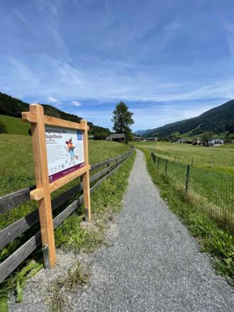 Der Weg verläuft zuerst durch Wiesen und Wälder Richtung Bruck. In Bruck angekommen spaziert man gemütlich über die asphaltierten Straßen und Wege bis nach Niederhof. Hier geht es dann durch den Wald 300 m bergauf Richtung Gasthof Kohlschnait. Am höchsten Punkt angekommen hat man einen tollen Ausblick auf Bruck.