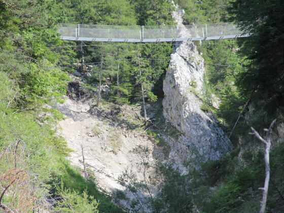 Ein Highlight ist die Überquerung der Hängebrücke. Für nicht Schwindelfreie gibt es aber auch eine Alternativroute.