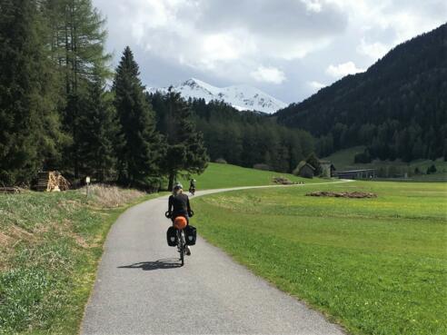 Enjoy a relatively relaxing day following the challenging first day. Return to the main road to pick up your route, and continue through beautiful green meadows, enjoying your gradual descent to the trail along the Inn River.