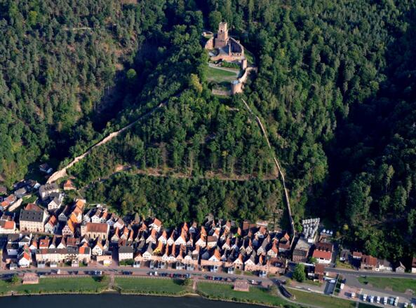 Ein Abstecher auf die andere Mainseite zur baden-württembergischen Kleinstadt Freudenberg lohnt sich in jedem Fall. Erstens besteht im komplett neugestalteten Mainvorland die Gelegenheit zur Stärkung im Eiscafe und am Kiosk und zweitens hat die Stadt mit dem Amtshaus, der ehemaligen Synagoge und der über der Stadt thronenden Ruine der „Freudenburg“ mit den die „Altstadt“ umschließenden Stadtmauern bedeutsame Zeugnisse zum Sandstein zu bieten. Diese und die Steinbrüche am Berghang und auf den Höhen unterstreichen die Bedeutung des Sandsteins in der Stadt.
