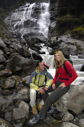 Ab der Bushaltestelle Sulzenau über den Ruetzbach zum Waldweg, der mäßig steil zur Sulzenaualm führt. Während des Aufstiegs zur Alm hat man einzigartige Ausblicke auf den mächtigen Grawawasserfall. Die urige Sulzenaualm lockt mit handgefertigten Schnitzfiguren. Im schönen Talkessel bieten sich imposante Blicke auf den Wasserfall des Sulzanaubaches. Ab hier führt der Steig in Serpentinen über eine Steilstufe hoch zur Sulzenau Hütte, die nahe der Zunge des Sulzenauferners liegt. Variante über den neu angelegten WildeWasserWeg. Die Alpenvereinshütte dient als Stützpunkt für viele hochalpine Touren und Gletschertouren.