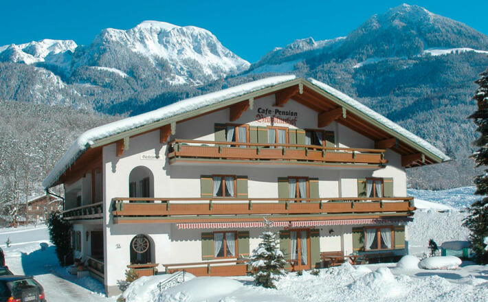 Genießen Sie gepflegte bayerische Gastlichkeit; hausgemachte Kuchen, reichhaltiges Frühstücksbuffet und heimische Spezialitäten. In zentraler, ruhiger Lage ist unser Haus Ausgangspunkt für Spaziergänge, Wanderungen und Bergtouren. Bequem zu Fuß zu erreichen, der Königssee, die Kunsteis-Bob- u. Rodelbahn sowie die Jennerbahn-Talstation. Ideale Voraussetzungen für den Winterurlaub bietet das, durch Beschneiung schneesichere, Jenner-Skigebiet. Fahrradkeller, sowie W-LAN vorhanden.