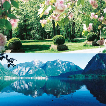 Genieße die Sommernacht auf der Terrasse oder am offenen Kamin mit einem Gläschen guten Wein und chilliger Musik. Im romantischen Park mit alten Säulen, Steintreppen, gepflegtem Rasen, echten Gipsy Roulottes direkt entlang des Hallstättersees.