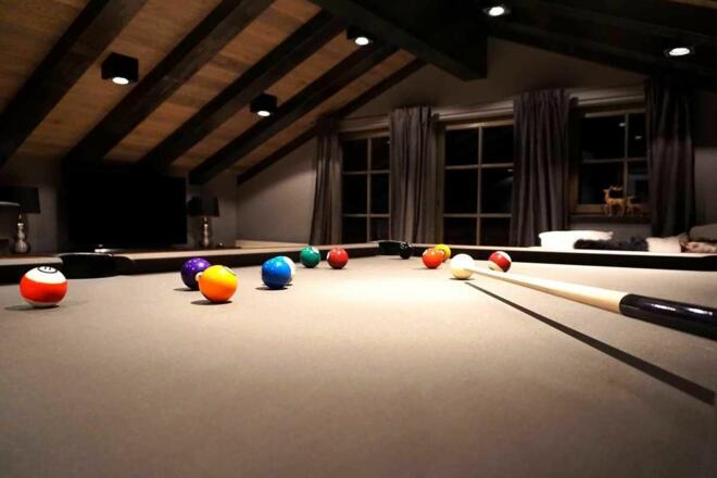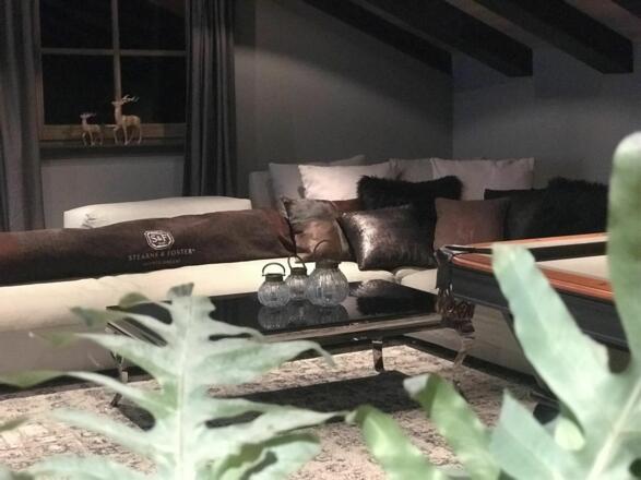 Für luxuriöse Urlaube im Landkreis Garmisch-Partenkirchen bietet das Chalet S eine wahre Wohlfühloase und sorgt für sämtliche Annehmlichkeiten, die an Exklusivität keine Wünsche offen lassen. Von außen fügt sich das stilistisch an die Alpen angepasste, vollkommen freistehende Chalet harmonisch in die natürliche Landschaft ein. Im Inneren werden anspruchsvolle Feriengäste auf rund 250 Quadratmeter Wohnfläche mit einem modernen Wohlfühlambiente überrascht. Sämtliches Mobiliar wurde aus Holz und Naturstahl der Design-Linie S per Hand gefertigt. Das Chalet bietet einen gemütlichen Wohnbereich mit offenem Naturstahlkamin und ist mit vielen Fellen und bequemen Sofas ausgestattet, die allen Urlaubsgästen viel Platz und gemütliche Stunden bescheren. Auch ein exklusiver Billardtisch von Brunswick unterstreicht die Exklusivität dieses in der Region einzigartigen Chalets. Das geschmackvoll eingerichtete Esszimmer vermittelt ein Ambiente der modern-eleganten Natur und ist zudem mit einem Naturstahl beplanktem Kachelofen bestückt. Weinliebhaber finden in unserer exklusiven Vinothek bestimmt das passende Tröpfchen(nicht im Preis enthalten). Auch in der einladend großen Premium-Küche finden Freunde der Extravaganz weitaus mehr, als man zum Kochen benötigt. Sämtliche Elektrogeräte sind von namhaften Premium-Herstellern, wie der Ofen von SMEG. Im Obergeschoss werden gemütliche Rückzugsorte geboten. Hier finden Gäste eine separate Leseecke sowie einen kleinen Arbeitsbereich. Alle Schlafzimmer sind mit großzügigen Boxspringbetten von Stearn & Foster ausgestattet, die für erholsame Nächte sorgen. Von der freistehenden luxuriösen Badewanne hat man zudem einen idyllischen Ausblick auf die bewaldete Landschaft. Wer in freier Natur saunieren will, der begibt sich nach ausgedehnten Skiabfahrten in die Blockhaussauna oder den schwedischen Hotpot von Skargards, der mit Naturholz befeuert wird. Dieses einzigartige Juwel liegt auf rund 1000 Höhenmetern, nur wenige Gehminuten von der Zugspitzbahn entfernt. Das Chalet ist aufgrund seiner Ausstattung, Größe und Lage unvergleichlich. Es ist das einzige Feriendomizil, das in unmittelbarer Nähe zum Eibsee und zur Zugspitze liegt. Das Chalet eignet sich genauso für Sommerferien in den Alpen, wie für winterliche Aktivitäten im Schnee. Trotz der freistehenden Lage, führt die, zu bestimmten Zeiten frequentierte, Zufahrtsstraße zum Eibsee/Zugspitze durch Urlaubsgäste am Haus vorbei. Diese ist im Winter immer geräumt, sodass Sie die umliegenden Orte wie Grainau, Garmisch-Partenkirchen, mit zahlreichen Restaurants, Geschäften uvm. optimal erreichen können. Die nostalgische Zugspitzbahn, die Sie mit Ihrer Kurkarte kostenlos nutzen können, fährt am Haus vorbei. Zudem befindet sich neben Garmisch-Partenkirchen ein wunderbarer Golfplatz.