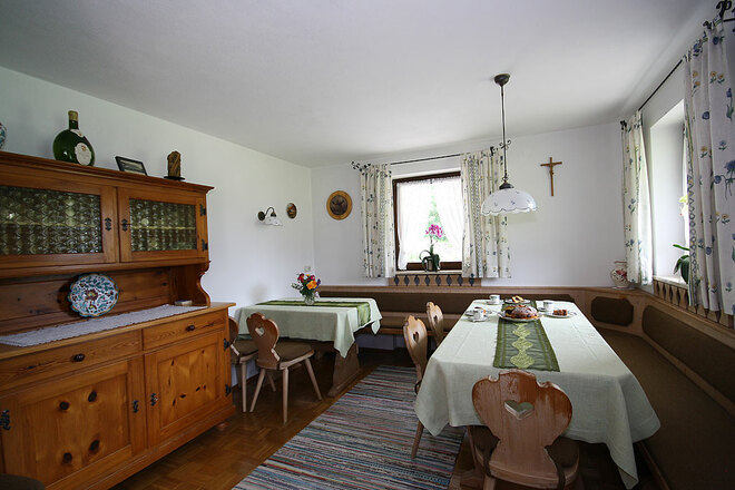 Auf unserem Bauernhof herrscht Biobetrieb mit Milchkühen, Pferden, Ziegen und Hühnern und wir haben einen Fischweiher. All unseren Gästen stehen eine Liegewiese und Terasse mit Liegestühlen zur Verfügung und Sie haben die Möglichkeit zu grillen oder Tischtennis zu spielen. Für die Kinder gibt es auch einen Spielplatz zum Herumtollen. Außerdem bieten wir Ihnen Brötchenservice, ein Kinderbett, wenn Sie eines benötigen, und einen Gäste-Kühlschrank. Unser Frühstück ist liebevoll mit regionalen Produkten zubereitet. Im Ort besteht Einkaufsmöglichkeit mit regionalen Produkten. Ebenso finden Sie einen Radverleih im Ort. Mit Ihrer Gästekarte fahren Sie kostenlos im RVO Bus bis nach Aschau und Bernau-Felden. Jederzeit können sie auch unser Hausprospekt anfordern.