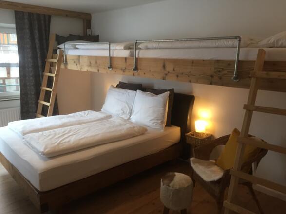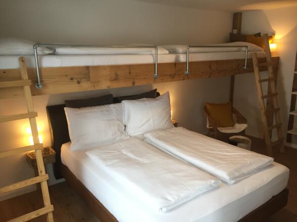 Unsere Dreibett- und Vierbettzimmer eignen sich besonders für den gemeinsamen Urlaub mit der Familie oder guten Freunden! Nicht nur Kinder sind begeistert, in unsere Loft-Betten hinauf zu kraxeln und in luftiger Höhe zu nächtigen. Für traute Zweisamkeit gibt es bei uns natürlich auch klassische Doppelzimmer.