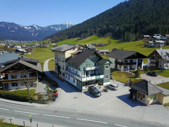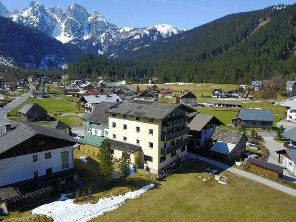 Gosau: fahre bei der Pass Gschütt Kreuzung geradeaus auf die Gosausee Landstraße, nach ca. 6 km erreichst du die Unterkunft auf der linken Seite.
