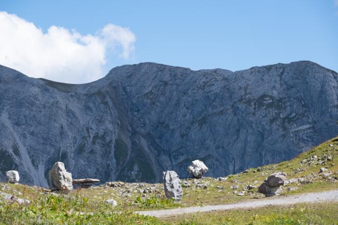 Vom Wanderstartplatz Postamt folgen sie der Lech-Promenade flussaufwärts bis Sie linker Hand die Rüfikopfbahn sehen. Mit der Gondel geht es auf den Rüfikopf (2.350 m). An der Bergstation der Rüfikopfbahn liegt ein Buch auf, in dem Sie sich verewigen können. Folgen Sie nun dem Geoweg Rüfikopf abwärts Richtung Monzabonsee. Von dort geht es weiter abwärts zur Monzabonalpe. Kurz vor der Überquerung des Pazüelbaches finden Sie eine Besonderheit die Hüttenbibliothek. Hier können Sie sich ein schönes Buch aussuchen, lesen, verweilen und ausspannen. Weiter geht es immer dem breiten Alpweg folgend, an der Talstation des Trittkopflifts vorbei und weiter leicht ansteigend bis der Weg mäßig steil abwärts bis nach Zürs am Arlberg führt. In Zürs angekommen können Sie mit dem kostenlosen Wanderbus zurück zum Ausgangspunkt fahren oder Sie machen noch einen kleinen Abstecher zur Europäischen Wasserscheide. Dafür folgen Sie der Straße durch Zürs bis zum Trittkopflift, hier schlängelt sich ein Wiesenweg durch die beweideten Alpwiesen immer am Bach entlang in Richtung Flexenpass. Beim Flexenpass angekommen überqueren Sie die Straße und finden direkt neben dem Flexenhäusl diese beeindruckende Installation.