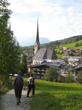 Der Weg ab Dienten beginnt an der kleinen Kirche am Berg. Verweilen Sie dort kurz, genießen Sie die Ruhe und den herrlichen Ausblick und erbitten Sie den Segen des Hl. Nikolaus, der nicht nur der Schutzherr gegen die Gefahren des Wassers, sondern auch der älteste Patron der Reisenden ist. Der Weg Nr. 50 führt vorbei am "Haus der Stille" bis zum Filzensattel. Vorbei an einer Wegkapelle führt der Weg erst der Straße entlang und zweigt danach auf den Wanderweg Nr. 34 Richtung Hinterthal ab. Genießen Sie den Blick auf das Steinerne Meer mit dem Wildalmkirchl.